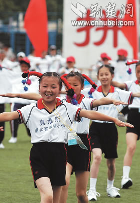 全國首屆希望小學(xué)運(yùn)動(dòng)會昨日在北京開幕,來自大別山下英山縣石頭嘴鎮(zhèn)希望小學(xué)的20名學(xué)生代表,向首都觀眾展現(xiàn)了湖北少年勤奮好學(xué),勇于拼搏的形象。據(jù)了解,中國青少年發(fā)展基金會發(fā)起實(shí)施希望工程15年來,已資助250多萬名農(nóng)村貧困學(xué)子,援建希望小學(xué)萬余所。湖北日報(bào)記者 王威 攝