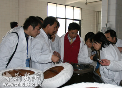 湖北化工研究所的員工展示光纖產(chǎn)品