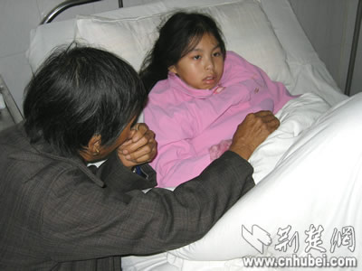 在縣人民醫(yī)院內(nèi)三科9病房里,潔白的病床上躺著一個(gè)面色蒼白、嘴唇發(fā)烏的小姑娘,她就是楊青。在楊青艱難地望過(guò)來(lái)的時(shí)候,記者的心不禁打了個(gè)顫:大眼睛沒(méi)有一絲神采!記者反復(fù)醞釀的問(wèn)候語(yǔ)哽在喉中。楊青的父母、奶奶、姑媽,卻忍不住悲傷,淚如雨下。“楊青,你痛不痛?”“痛……”楊青張了張嘴,聲音弱得幾乎聽不見!澳睦锿,告訴阿姨好嗎?”“全身都痛!睏钋囝澏吨鲁鲞@4個(gè)字后,不再開口說(shuō)話。
