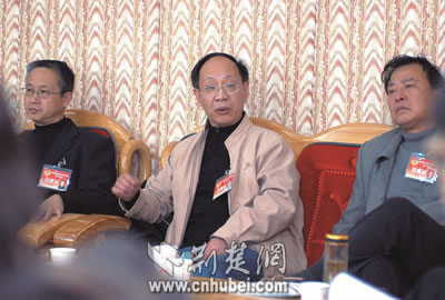 昨日下午,出席省政協(xié)九屆三次會議的吳人亮(中)委員在分組討論時發(fā)言。 荊楚網(wǎng)(湖北日報(bào))記者王威攝