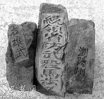 近日,武昌民間磚瓦收藏家劉文斌(上圖)在黃鶴樓下先賢街發(fā)現了一塊古磚,磚側一行銘文“統(tǒng)領省防武毅馬步□”字樣(下圖)。據研究武昌城民間文史考古家王昌旺考證,明代軍事建制在《明史》中均可查,然而有實物、遺址的證實卻不多。這塊明代古磚是武昌楚王府拱衛(wèi)軍高級指揮機關的遺物,對研究楚王府的“府兵制”起到了實物佐證作用。