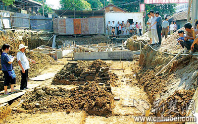 昨日上午,武漢市多名考古專家現(xiàn)場查看后,初步認為此處是一座南北朝時期墓葬,有較高的考古價值。