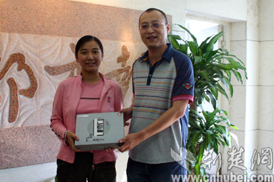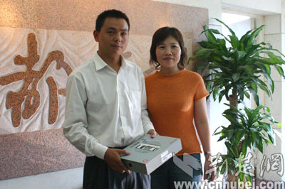 四時整,楚天都市報副總編輯費(fèi)力和荊楚網(wǎng)副總編輯張劍分別為兩位中獎?wù)哳C發(fā)了獎品,并希望他們繼續(xù)關(guān)注這次活動,能再次成為最后大獎的幸運(yùn)讀者。