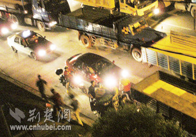 4月30日晚8時許,知情人告訴記者,20多個扒賊又現身了。晚9時許,記者趕至武泰閘,只見這一帶的車輛綿延一兩公里,其中多數為貨車,車速非常緩慢。