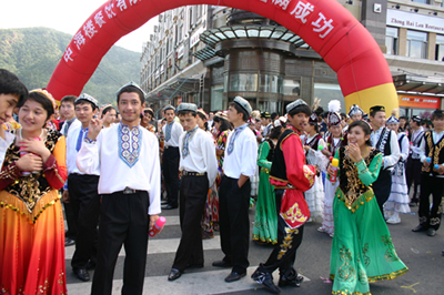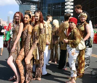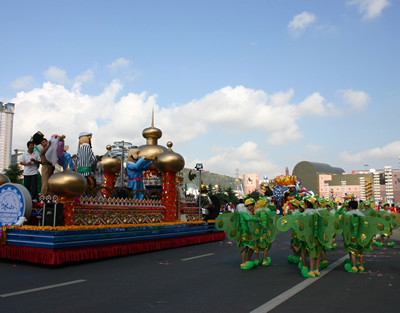 今天上午在新海廣場舉行的第六屆大連狂歡節(jié),更是使歡樂的海洋里掀起了歡樂的海潮。來自國內(nèi)外的24支狂歡巡游隊(duì)伍,以花團(tuán)錦簇的民族服裝和極度夸張的藝術(shù)手法,演繹了航天、花神、特洛伊木馬、梁山伯與祝英臺、孔雀仙子、海底動物、蝴蝶服飾、阿凡提、醉酒、美人魚、回娘家、貓友、豪華游覽馬車、日月潭傳說、堂吉訶德、木偶奇遇、狐假虎威、寶蓮燈、海娃與王子、小櫻丸子、尼爾斯騎鵝記、阿里巴巴、輪滑表演等國內(nèi)外著名童話,電影故事等。最為耀眼的是以音樂劇《貓》的扮相出場的表演隊(duì)伍,他們獨(dú)特的表演和造型贏得了在場觀眾最多的歡呼聲。狂歡的服裝藝術(shù)巡游,吸引了數(shù)萬國內(nèi)外游客和當(dāng)?shù)孛癖姷挠^賞。