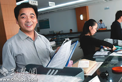 7日,武漢雷泰電力材料有限公司的張紅軍(上圖),僅用20分鐘就在武漢市洪山區(qū)政務(wù)服務(wù)中心辦理完公司的稅務(wù)登記證。他滿臉笑容地說:“現(xiàn)在辦事方便了,態(tài)度也好了!倍荒昵,辦理同樣一份登記證至少要跑4個部門,有時花一星期時間也不一定能辦妥。