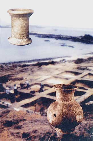 長頸圈足陶壺:食器或水器(下,高26厘米)[相關(guān)鏈接]:20世紀(jì)中國百項考古大發(fā)現(xiàn)(1-20)21、大溪遺址(圖)22、城頭山遺址(圖)23、屈家?guī)X遺址(圖)24、崧澤遺址(圖)25、馬家窯遺址(圖)26、柳灣墓地(圖)27、牛河梁遺址(圖)28、城子崖遺址(圖)29、良渚文化遺址群(圖)30、石家河遺址群(圖)31、陶寺遺址(圖) 32、王城崗遺址(圖)33、齊家坪遺址(圖)34、卡若遺址(圖)35、石峽遺址(圖) 36、東灣仔北遺址(圖)37、圓山遺址(圖)38、二里頭遺址(圖)39、東下馮遺址(圖)40、夏家店遺址(圖)