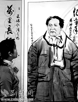昨日,一名青年在一幅題為《憶當(dāng)年·延安》的畫前駐足觀賞。今年是中國工農(nóng)紅軍長(zhǎng)征勝利到達(dá)陜北70周年,武漢市江漢區(qū)特舉辦書畫展,繼承革命光榮傳統(tǒng),弘揚(yáng)延安精神。