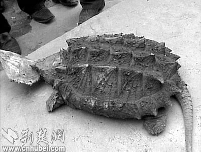 荊楚網(wǎng)消息(湖北日報)通訊員唐科達報道:22日,京山縣雁門口鎮(zhèn)阮溝村村民魏作華在清理魚塘?xí)r驚奇發(fā)現(xiàn)一只上面長滿犄角的大鱉。這只大鱉牙齒鋒利,呈灰綠色,體重8.4公斤。