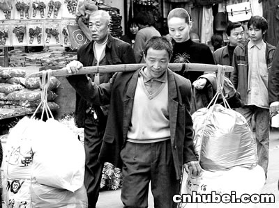 圖一:漢正街的“扁擔(dān)”方便了千家萬(wàn)戶。