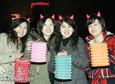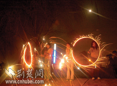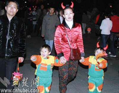 中山公園里,一對(duì)對(duì)情侶紛紛登上湖中的小舟,在燭光中許下愛情的誓言。25歲游客小敏舉著燈籠,偎依在男友的懷里,羞澀地笑著告訴記者:“今天我同意嫁給他了,這是我們金豬年最大的喜慶。”