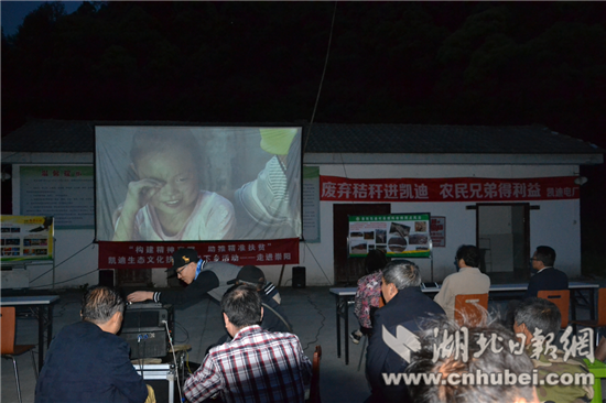 當(dāng)晚,在電影開(kāi)始前播放了由陽(yáng)光凱迪新能源集團(tuán)提供的秸桿回收與利用宣傳片,讓農(nóng)民朋友了解產(chǎn)業(yè)開(kāi)發(fā)“變廢為寶”帶來(lái)的收益,播放了由赤壁市普法工作辦公室拍攝制作的《留守兒童》公益廣告片和邵陽(yáng)花鼓戲《兒大女大》,現(xiàn)場(chǎng)還發(fā)放了由省扶貧辦編印的《扶貧到戶(hù),畫(huà)說(shuō)政策》宣傳手冊(cè)、秸桿回收利用好處多等資料,讓廣大農(nóng)民群眾進(jìn)一步了解黨和政府的扶貧政策,真正享受到政策的好處。電影下鄉(xiāng)活動(dòng)猶如一道文化大餐,不僅給群眾送去歡樂(lè),而且還豐富了人民群眾的業(yè)余文化生活。