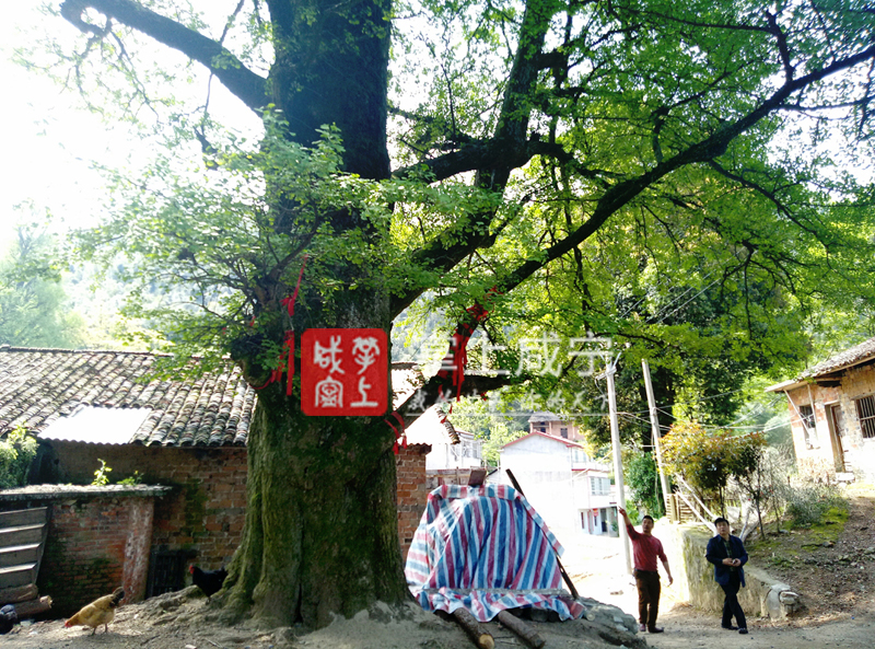 記者看到,在村內(nèi)的一處古民居旁,三棵銀杏樹高達近70米,枝葉繁茂,樹干挺立,要想圍住粗大的枝干必須要5個以上的成年人才能做到。在銀杏樹四周,還分布著拐棗、垂柳等多棵百年古樹。