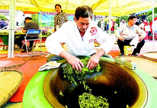 湖北日報(bào)訊 5日至6日,咸寧首屆手工制茶賽在潛山廣場舉行。這次比賽集聚了來自咸安、崇陽等6個(gè)縣市區(qū)的手工制茶高手,評比出10組“制茶王”,旨在推動手工制茶非物質(zhì)文化傳承,壯大茶產(chǎn)業(yè)。(視界網(wǎng) 雷平 攝)
