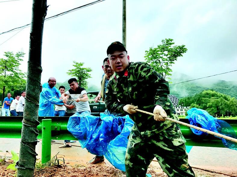 被救老板姓劉,妻子姓何。劉老板獲救后,一上岸便撲通地跪在地上表示感謝。他介紹,中午的時(shí)候看著水在漲,他和妻子便先將孩子送到路上,交給村支書照看,他們則返回?fù)尵蓉?cái)物。誰知水漲得太快,財(cái)物還沒有搶出來,自己和妻子就被困在廠里了?!八览锾由?,非常感激!”他說,木材廠地勢較高,從未被淹過,他們發(fā)現(xiàn)被困后,根本走出不來。眼看木材被沖走,他們只好爬到靠墻的木板上等待救援,看著水就要淹上來了,他曾擔(dān)心救援隊(duì)伍還未到自己和妻子就被沖走了。