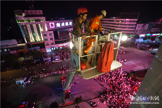晚8時,通城縣建筑體量最大的城市綜合體——三合中百購物廣場內(nèi),燈火通明,熙熙攘攘。忽然,警鈴大作。廣場因電線短路發(fā)生“火災(zāi)”,火勢迅速蔓延,大量人員被困。警情就是命令。廣場內(nèi)4個微型消防站立即按照預(yù)案,疏散廣場內(nèi)部人員,并啟動固定消防設(shè)施,阻止火勢蔓延。