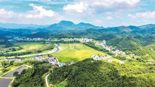 圖為:青山綠水中的崇陽金塘鎮(zhèn)畈上村