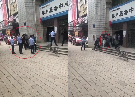 據(jù)現(xiàn)場視頻顯示,多名警務(wù)人員持警械將自來水公司客戶服務(wù)中心圍住,現(xiàn)場叫喊聲嘈雜。雙方在對峙后,一名警察連續(xù)向店內(nèi)射擊3次,隨后其余警務(wù)人員持鋼叉及盾牌上前,經(jīng)短暫搏斗后,將一名男子帶出。嫌疑人被帶出時,依舊能夠站立走動。