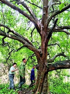 圖為:大畈鎮(zhèn)白泥村一棵150多年的枇杷樹,枝繁葉茂。