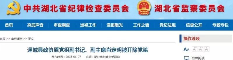 據(jù)咸寧市紀委監(jiān)委消息:經(jīng)咸寧市委批準,咸寧市紀委監(jiān)委對通城縣政協(xié)原黨組副書記、副主席肖定明違紀違法問題進行了紀律審查和監(jiān)察調(diào)查。