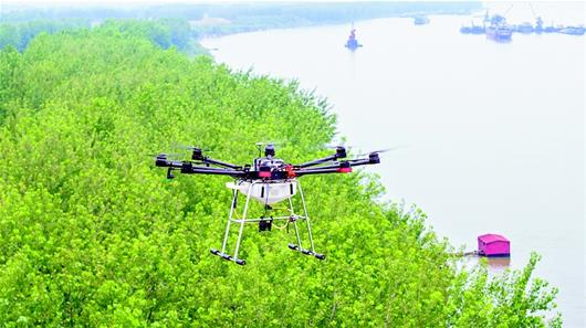 湖北日報(bào)訊 6月12日,在嘉魚縣長江干堤陸溪段,無人機(jī)在防浪林上空噴灑低毒無殘留農(nóng)藥,防治病蟲害。近期,嘉魚段長江防浪林出現(xiàn)了蟲卵和幼蟲,嘉魚縣林業(yè)局迅速進(jìn)行綜合防治,全面維護(hù)從陸溪至簰洲灣109公里長江沿線及洲灘6萬余畝楊樹林。