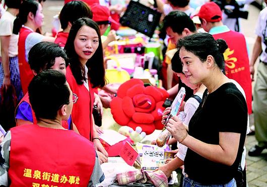8月22日,咸寧市咸安區(qū)溫泉街雙鶴橋社區(qū)聯(lián)合8個單位的64名黨員志愿者,開展“黨員在行動、助力學(xué)子夢”愛心義賣活動,號召黨員志愿者們將家中的閑置物品拿出來義賣,用于資助困難大學(xué)生。當(dāng)天活動中,志愿者們賣出物品300余件,籌得愛心款共計13650元,全部現(xiàn)場捐給8名困難大學(xué)生。