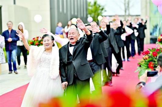 楚天都市報訊(通訊員繆北辰 記者周鵬 實習生李亞輝)昨日上午,12對老年夫妻在中建三局咸寧項目工地身著婚禮服,一起牽著手走紅地毯,補辦集體婚禮,幸福地彌補了當初結(jié)婚時的遺憾,追憶了一番青春歲月。