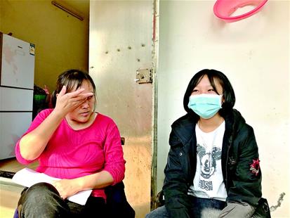 圖為:陸茶和母親在簡陋的出租屋里