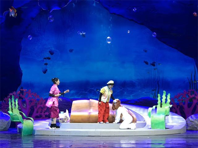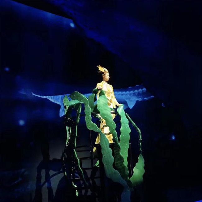 《浮出水面》講述了未來人類因一次地震而沉入海底生活,小男孩“歡歡”一家在未來世界認識到環(huán)境污染的嚴重,在中華鱘“奔奔”的指引下浮出水面,最后重回陸地建設(shè)家園的故事,劇情將大量音樂舞蹈與科學(xué)知識結(jié)合,涵蓋垃圾分類、人體急救、阿基米德原理、火箭噴射等多種科學(xué)知識。整場演出亮點紛呈。