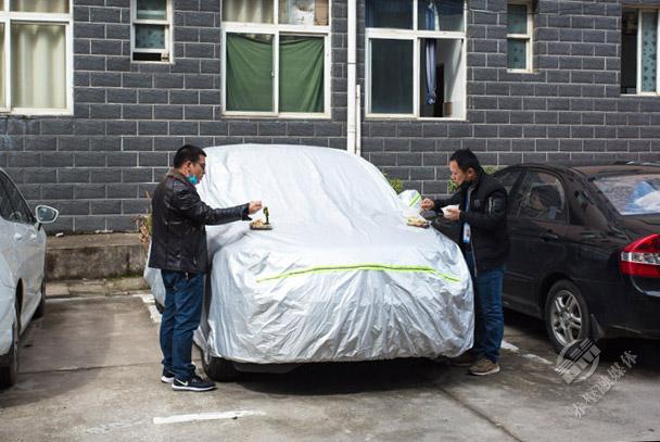 就地取材,把車蓋當(dāng)餐桌