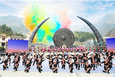 瑤祖故里大觀園內(nèi),古瑤壘石門樓,蘊(yùn)天地靈氣,攬關(guān)山萬重。天然青石壘砌的梯形門樓,古色古香,錯(cuò)落有致。