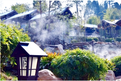 在這里,70多個(gè)溫泉泡池高低錯(cuò)落,或鑲嵌于園林湯院中,或散落于戶外溫泉區(qū)。