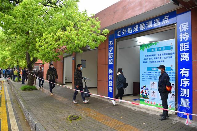 演練圍繞學(xué)校開學(xué)后,師生進(jìn)入校園“如何進(jìn)行體溫檢測(cè)”、“發(fā)現(xiàn)發(fā)熱學(xué)生如何進(jìn)行應(yīng)急處置”展開。參與演練的各校師生在值班教師的指揮下,保持良好隊(duì)形和安全間距,分批次有序通過紅外熱成像測(cè)溫處進(jìn)入校園。