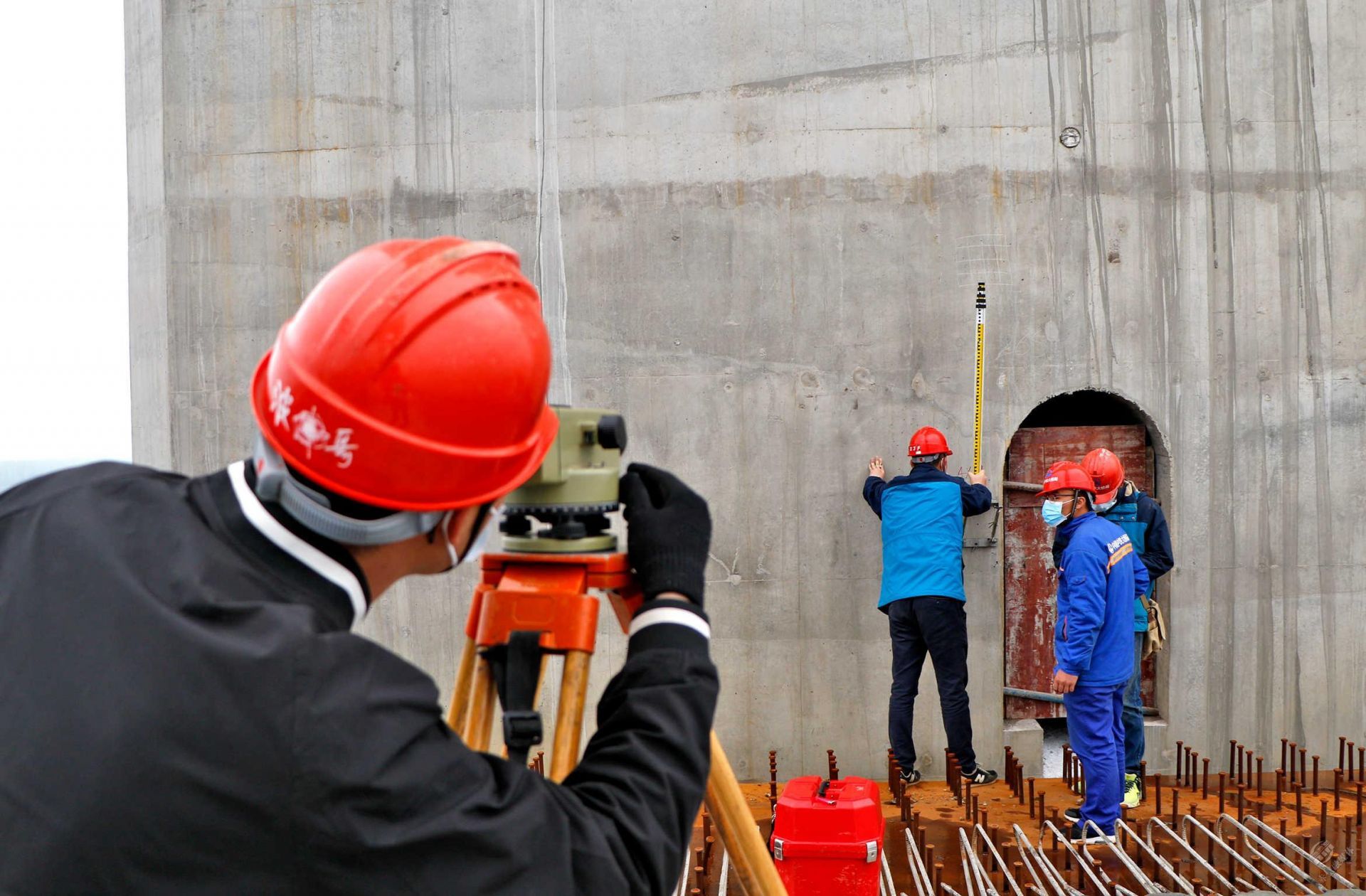 4月21日,赤壁長江公路大橋項目建設現(xiàn)場,技術人員為確保鋼梁準確吊裝,正在進行定位測量。