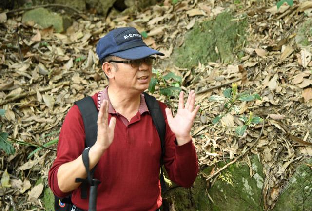 “馬上登頂了,路更險(xiǎn)峻,我上前頭帶路,大家注意安全?!闭缋现念A(yù)警,從“虎歇坪”至“天鷹門”登金峰頂?shù)穆?,不算遠(yuǎn),但奇險(xiǎn),一腳寬的沙石路下便是懸崖,“我們現(xiàn)在眼望的‘綠水青山’,正是當(dāng)年革命先烈們?cè)陔U(xiǎn)峻金峰山的奮戰(zhàn)換來的?!?/p>
