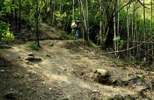 從烈士陵園旁沿著彎彎曲曲的山路,艱難地穿梭在險(xiǎn)峻的山間,探尋曾經(jīng)發(fā)生過故事的革命之地。經(jīng)過“百步十八彎”“愛泉”“云天井”,歷經(jīng)一個(gè)多小時(shí)到達(dá)“虎歇坪”,終見紅艷艷的杜鵑花,開在崎嶇險(xiǎn)路兩旁。