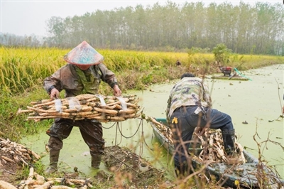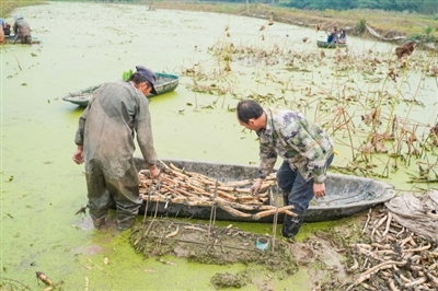 10月26日,嘉魚縣陸溪鎮(zhèn)界石村鴨兒湖養(yǎng)殖專業(yè)合作社里,負(fù)責(zé)人龔木前正和工人們一起忙著挖藕、稱重、清洗、包裝。龔木前是一名退役軍人,2009年,龔木前從部隊(duì)轉(zhuǎn)業(yè)后回鄉(xiāng)創(chuàng)業(yè),承包了村里50畝荒湖種野藕。經(jīng)過幾年時(shí)間的發(fā)展,他成立了農(nóng)業(yè)合作社,把藕塘面積擴(kuò)大到300多畝。近些年,通過他的努力,他家的野藕通過電商遠(yuǎn)銷全國各地,高峰期時(shí),每天可以接到200余張訂單。 通訊員 耿海軍 杜瑞 攝