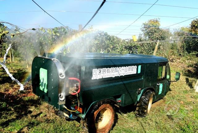 “2010年,我們就從事這個(gè)植保工作,當(dāng)時(shí)在市面上買了各種農(nóng)機(jī),但是一到地里,不行!怎么搞,就通過不斷地更新改造。到目前為止,在我手上這些機(jī)械已經(jīng)進(jìn)行了第四代的更新改造。”熊堃最新研發(fā)的新能源植保車采用鋰電池,代替原有的柴油動(dòng)力,具備節(jié)能環(huán)保超強(qiáng)霧化噴灑等特點(diǎn),1.5米的車身高度,可以讓它在低矮的獼猴桃林中自由穿行,最大程度地完成獼猴桃植保作業(yè)。