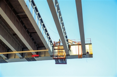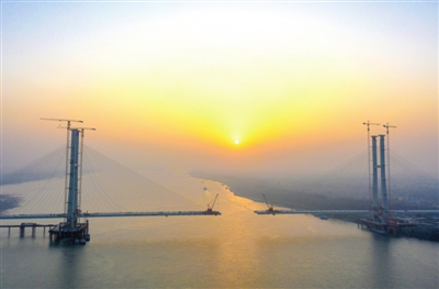 該橋南岸灘橋最后一孔50米的現(xiàn)澆箱梁已施工完畢。主跨橋梁也在不斷的實(shí)現(xiàn)合龍,目前合龍距離還剩76米。預(yù)計(jì)今年三月底實(shí)現(xiàn)合龍。