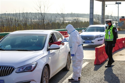 1月28日,2021年春運(yùn)開啟。29日上午,在咸安區(qū)張公高速收費(fèi)站路口,紅色水碼擺放成指引車道,幾個(gè)全副武裝的工作人員正對過往車輛逐一進(jìn)行排查。遇到外地或中高風(fēng)險(xiǎn)地區(qū)來車就指引其到帳篷內(nèi)測體溫、查健康碼等,并詳細(xì)登記對方信息。