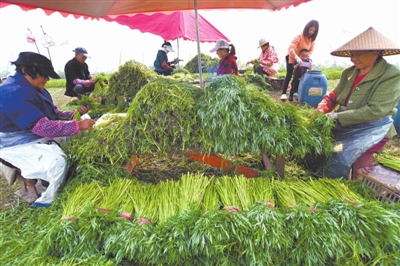 陸碼頭村土地平坦、土質(zhì)肥沃,靠近主城區(qū)。2014年開始,村民調(diào)整農(nóng)產(chǎn)品種植結(jié)構(gòu),讓藜蒿種植成為該村的特色產(chǎn)業(yè)。目前,該村藜蒿種植面積500余畝,成為促進(jìn)村民增收的一大特色產(chǎn)業(yè)。