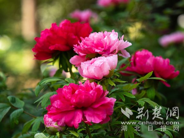 清明期間,武漢植物園內(nèi)3000株牡丹全部盛放,驚艷國色等您來賞。‘寒櫻獅子’‘島錦’‘富貴滿堂’等牡丹清香四溢,風(fēng)姿綽約,盡顯牡丹的“國色天香”。武漢植物園牡丹園以保育展示江南品系、西南品系、中原品系和外國品系為主,目前保育牡丹3000株,有紅、粉、紫、墨、黃、白等花色,單瓣、荷花、繡球、臺閣等花型。色澤淡雅的??的档ぽp逸出塵,一展牡丹的婉約風(fēng)姿。日本牡丹‘島錦’一花雙色,花朵在紅白相間,為少見的復(fù)色牡丹。還有墨色的‘珠光墨潤’,不僅色彩驚艷,花瓣還有著綢緞般光澤,為黑牡丹中的佼佼者。綠牡丹‘綠幕隱玉’如翡翠瑩潤通透,堪稱花中珍品。此外,園內(nèi)國內(nèi)外名品薈萃,展示牡丹的絕代風(fēng)采。