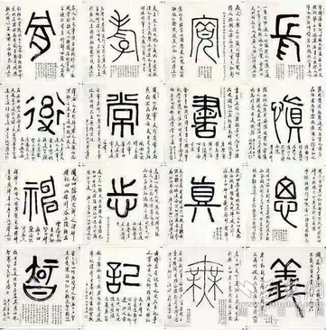 在創(chuàng)作中,陳履生用接近現(xiàn)代繪畫的方式,將字的主體以篆書寫在中心位置,周圍以行書題跋書寫注釋、個人感悟等相關內容,強化對這個字的認識過程,讓人有更深刻的理解。如開篇第二字“義”字的題跋,除了引用古籍中對義字的解讀,還加入了一句“時在國家多事之時,義士善舉皆多”的感悟,與當時“大疫當前有大義”的情境十分貼合。