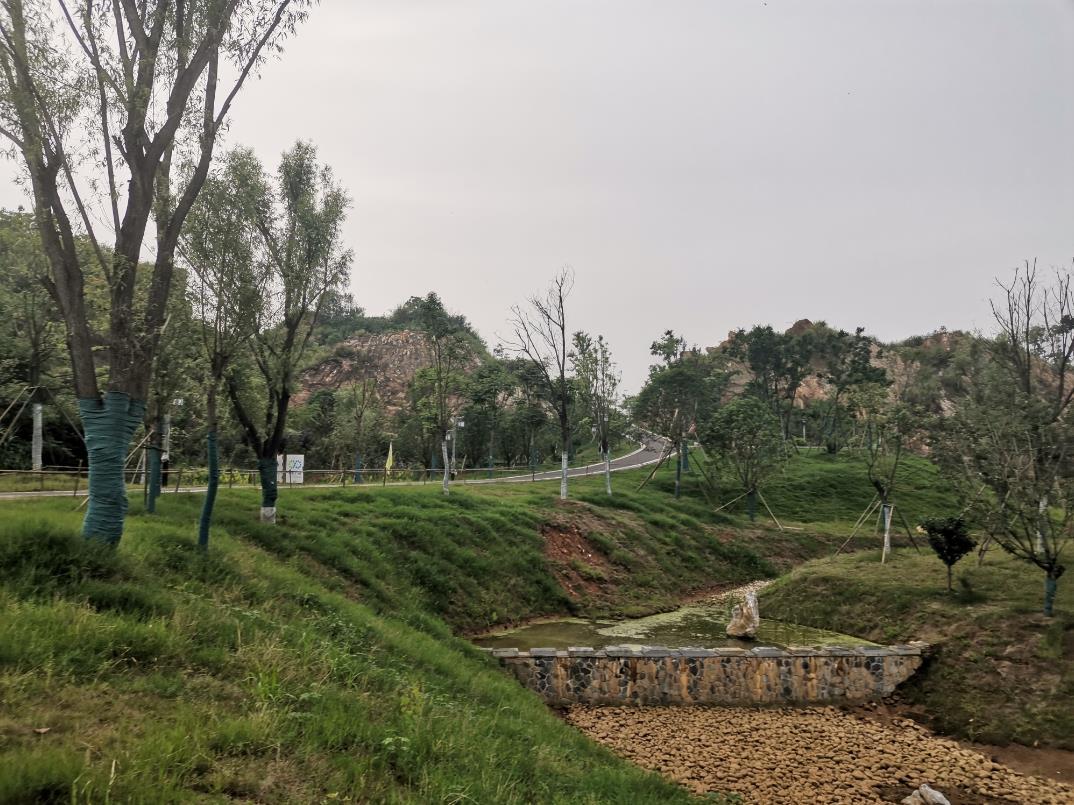 生態(tài)公園里一些低洼處,則被打造成水景旱溪,以三國故事“群英會”為靈感,栽植決明子、刺槐、櫸樹等40種以上喬灌木,以樹喻人,打造多品種植物園。