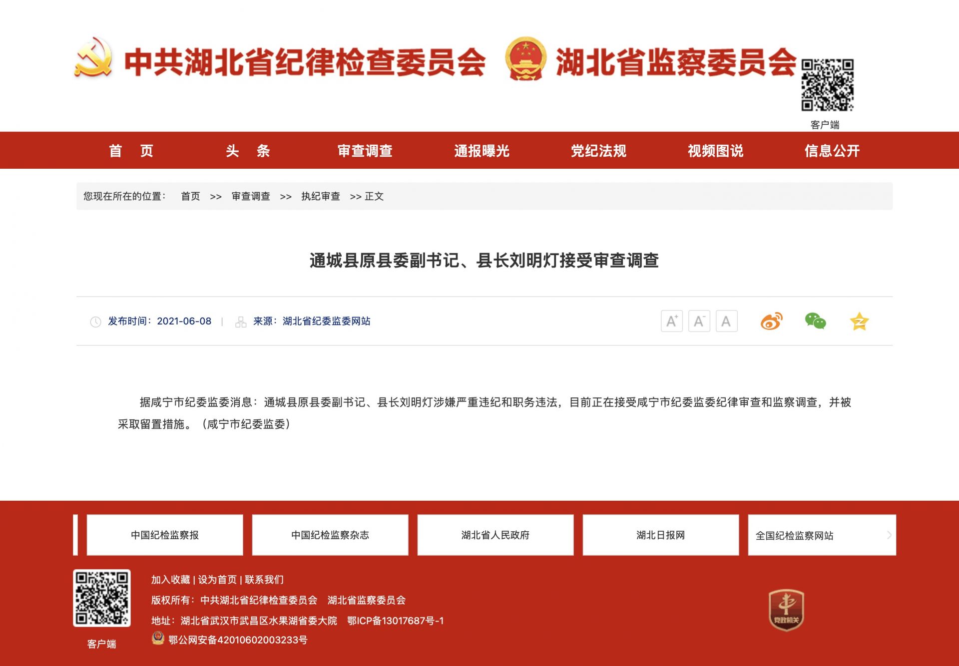 據咸寧市紀委監(jiān)委消息:通城縣原縣委副書記、縣長劉明燈涉嫌嚴重違紀和職務違法,目前正在接受咸寧市紀委監(jiān)委紀律審查和監(jiān)察調查,并被采取留置措施。