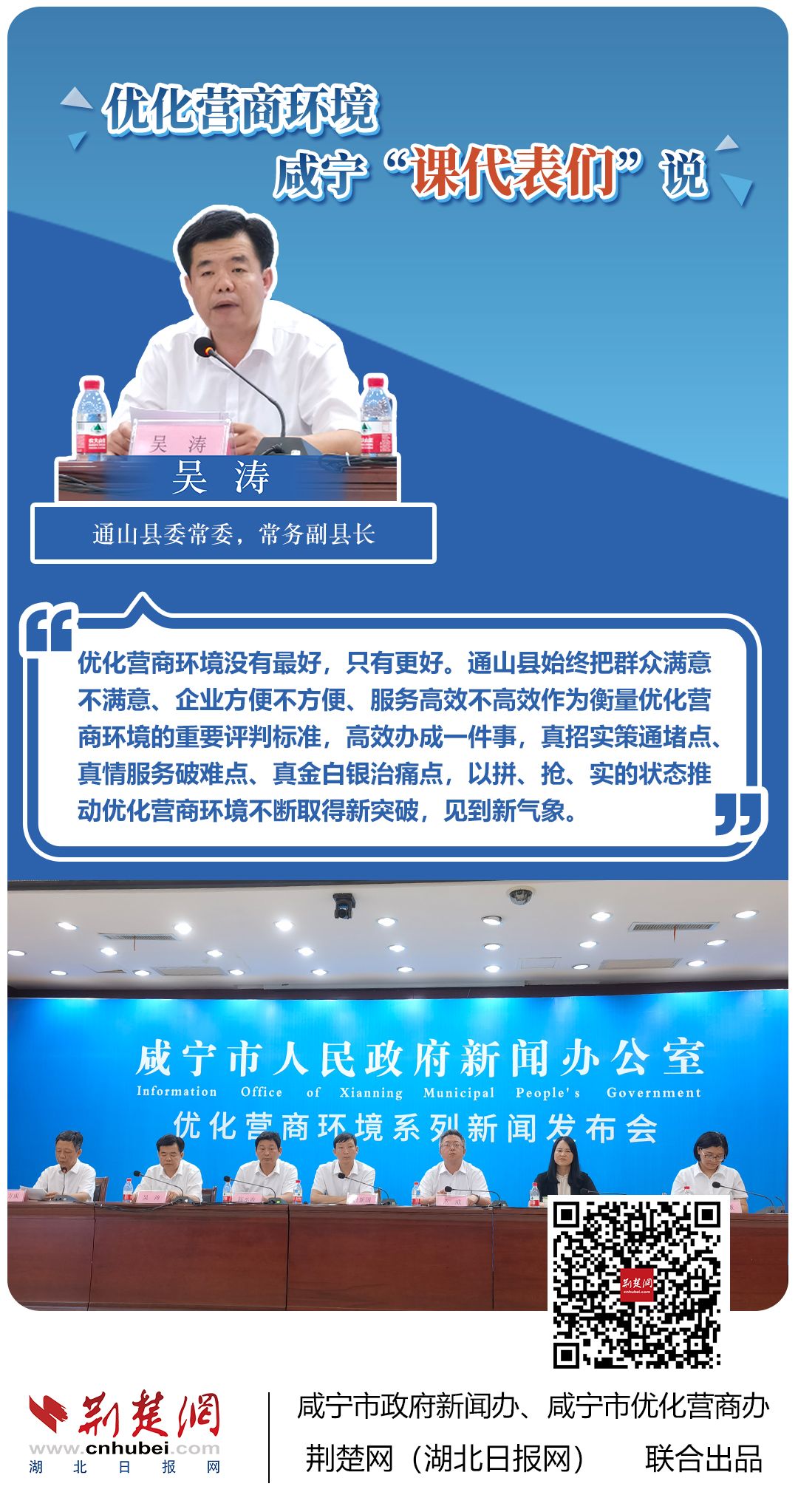 荊楚網(wǎng)(湖北日?qǐng)?bào)網(wǎng))訊(記者 田城 通訊員 孫方成 張永紅)跨省通辦、“零干擾環(huán)境”、最簡(jiǎn)流程優(yōu)服務(wù)、深化“放管服”改革、整肅行風(fēng)政風(fēng)……7月20日下午,咸寧市召開優(yōu)化營(yíng)商環(huán)境新聞發(fā)布會(huì)。會(huì)上,咸安區(qū)、嘉魚縣、赤壁市、通城縣、崇陽(yáng)縣、通山縣6個(gè)縣市區(qū)優(yōu)化營(yíng)商環(huán)境發(fā)言人亮相,全面介紹當(dāng)?shù)貎?yōu)化營(yíng)商環(huán)境有關(guān)情況,持續(xù)推進(jìn)咸寧市營(yíng)商環(huán)境朝著更優(yōu)、更好方向前進(jìn)。
