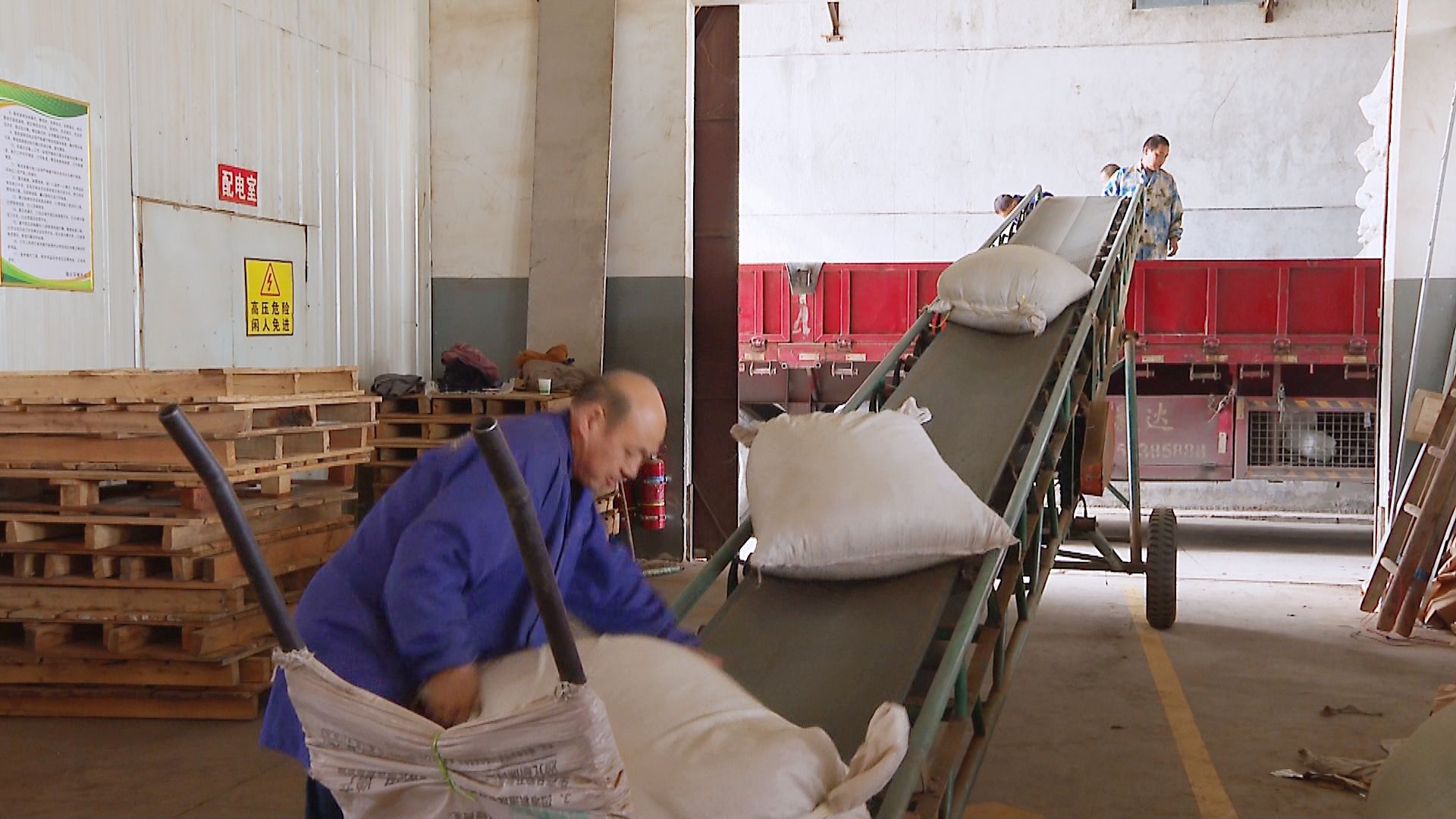 深秋時節(jié),天氣日漸寒冷,但位于大坪鄉(xiāng)下畈村的雙獅茶業(yè)生產車間卻暖意融融,數(shù)十位工人正忙著用小推車將一袋袋茶葉送上傳送帶,裝進物流運輸車車廂。