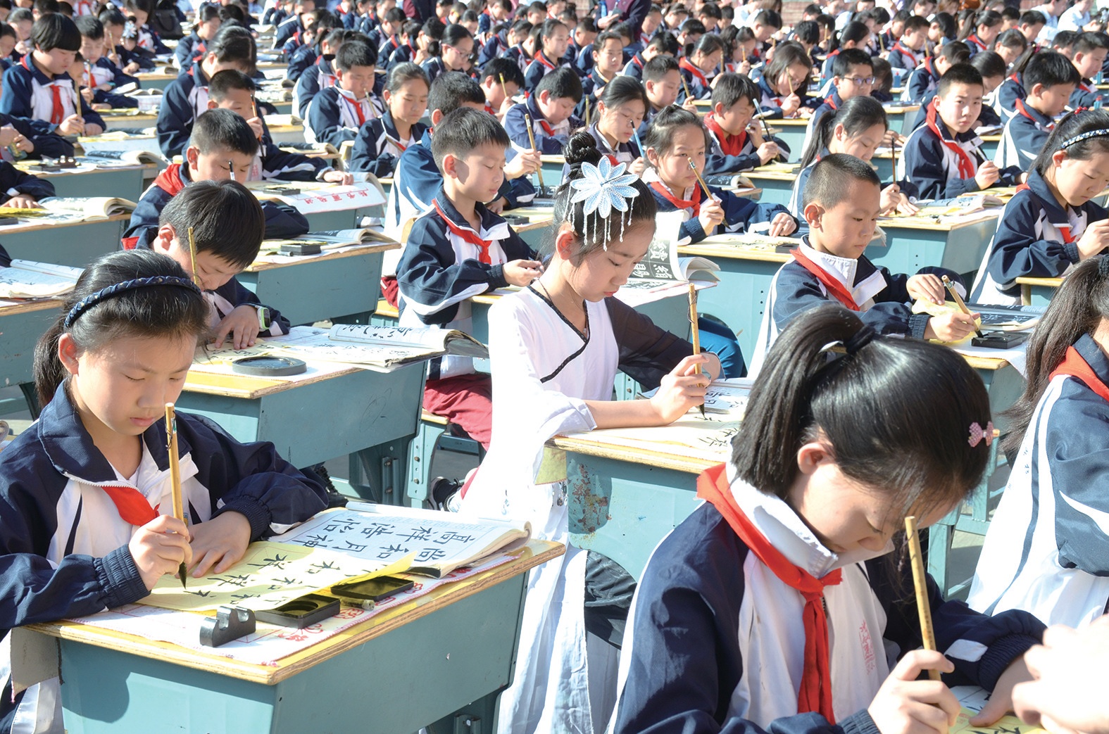 書寫是一個循序漸進的過程,在孩子小學階段有意識地培養(yǎng),讓孩子養(yǎng)成良好的書寫習慣,其將會受益一生。“我們學校每天堅持中午練20分鐘書法,孩子們學習書法的第一個內(nèi)容,就是坐姿訓練?!睎|風52小學校長龔明說。