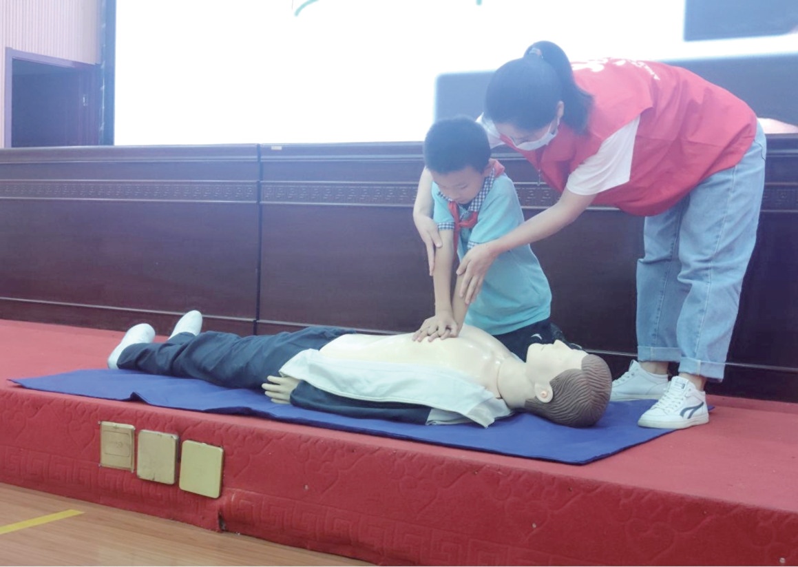 中國紅十字應急培訓師杜成芬為在場學生宣講。杜成芬結(jié)合自身經(jīng)歷向大家普及了溺水事件在夏季多發(fā)的原因和高危性。她說,我國15歲以下兒童首要死因是意外事故,而溺水約占6成,溺水后4—6分鐘,身體將遭受不可逆的傷害。
