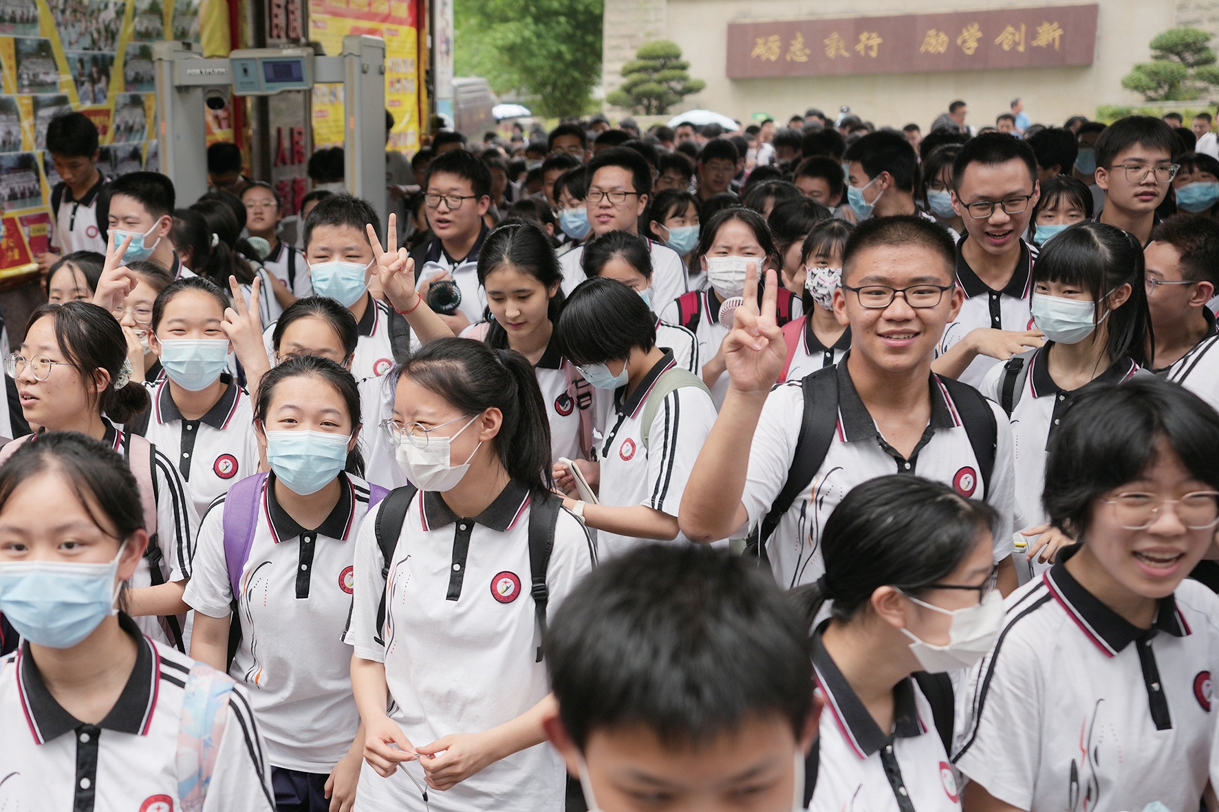 學(xué)生們邁著輕松的步伐,面帶笑容走出考場。